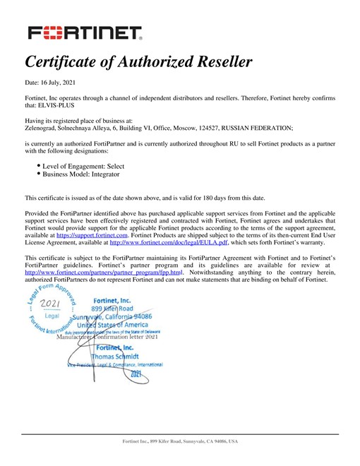 ЭЛВИС-ПЛЮС повысил статус в партнерской программе компании Fortinet